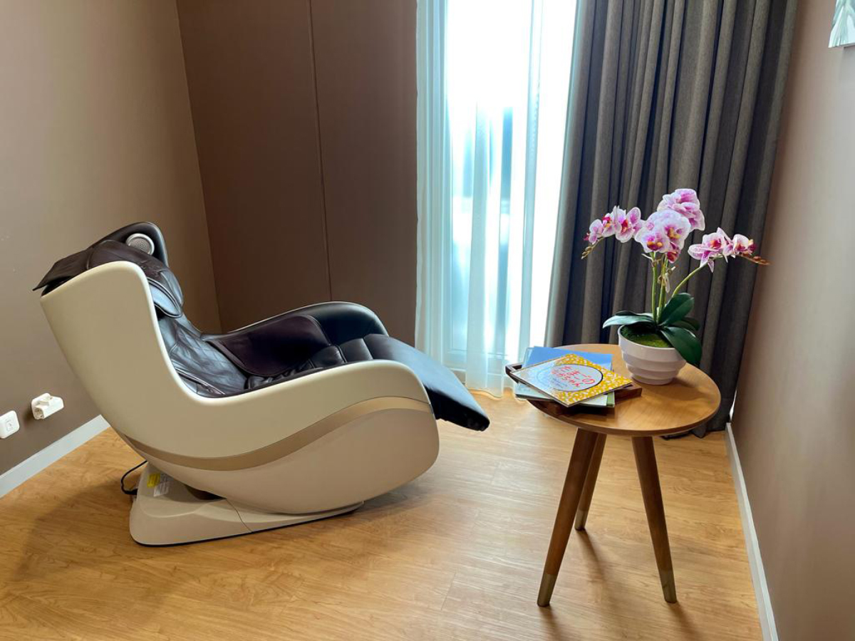 The massage chairs will soothe your tired body after a day of work or golf.